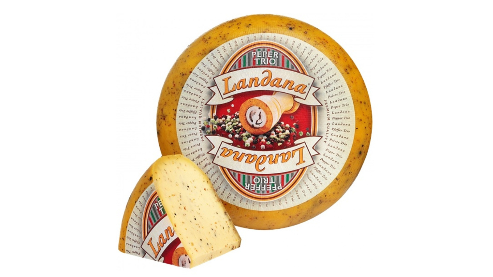 Sýr Landana Peper Trio je jemný holandský syr obohatený o zmes troch druhov korenia, ktoré mu dodávajú výraznú, aromatickú a príjemne pikantnú chuť. Má hladkú, pružnú konzistenciu a harmonický korenistý profil, ktorý vynikne na pečive, v sendvičoch, v teplých jedlách aj na syrovom tanieri. Je obľúbený pre svoju vyváženú ostrosť a bohatú vôňu čerstvo drveného korenia.