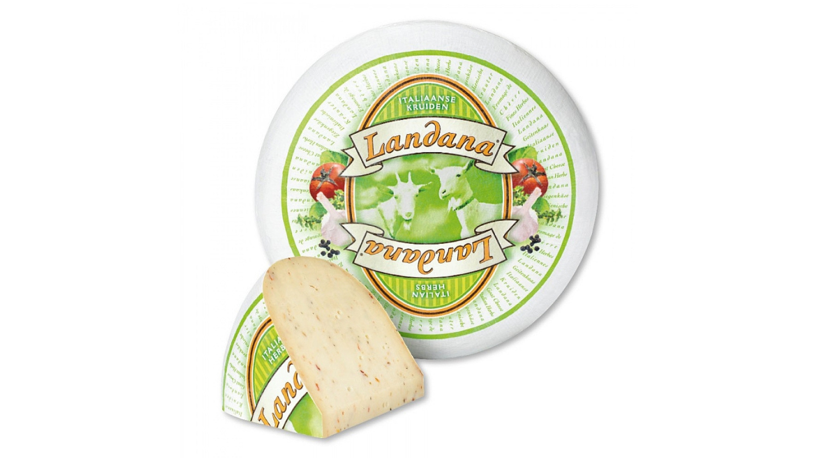 Sýr Landana Italiaanse Kruiden je jemný kozí syr dochutený zmesou aromatických talianskych byliniek, paradajok a cesnaku, ktoré mu dodávajú sviežu, stredomorskú a príjemne korenistú chuť. Má hladkú, krémovú konzistenciu a ľahko pikantný bylinný profil, ktorý vynikne na pečive, v šalátoch, cestovinách či ako súčasť syrového taniera. Je obľúbený pre svoju harmonickú kombináciu jemného kozího syra a výrazných talianskych chutí.