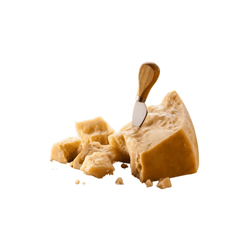 Parmezán je tradičný taliansky tvrdý syr s intenzívnou, slanou a jemne orechovou chuťou, ktorá sa počas dlhého zrenia ešte viac prehlbuje. Má typickú zrnitú, drobivú štruktúru a bohatú arómu, vďaka ktorej je obľúbený na strúhanie do cestovín, rizota, polievok či na dochutenie jedál. Výborne chutí aj samotný, podávaný v hoblinkách s olivovým olejom alebo vínom