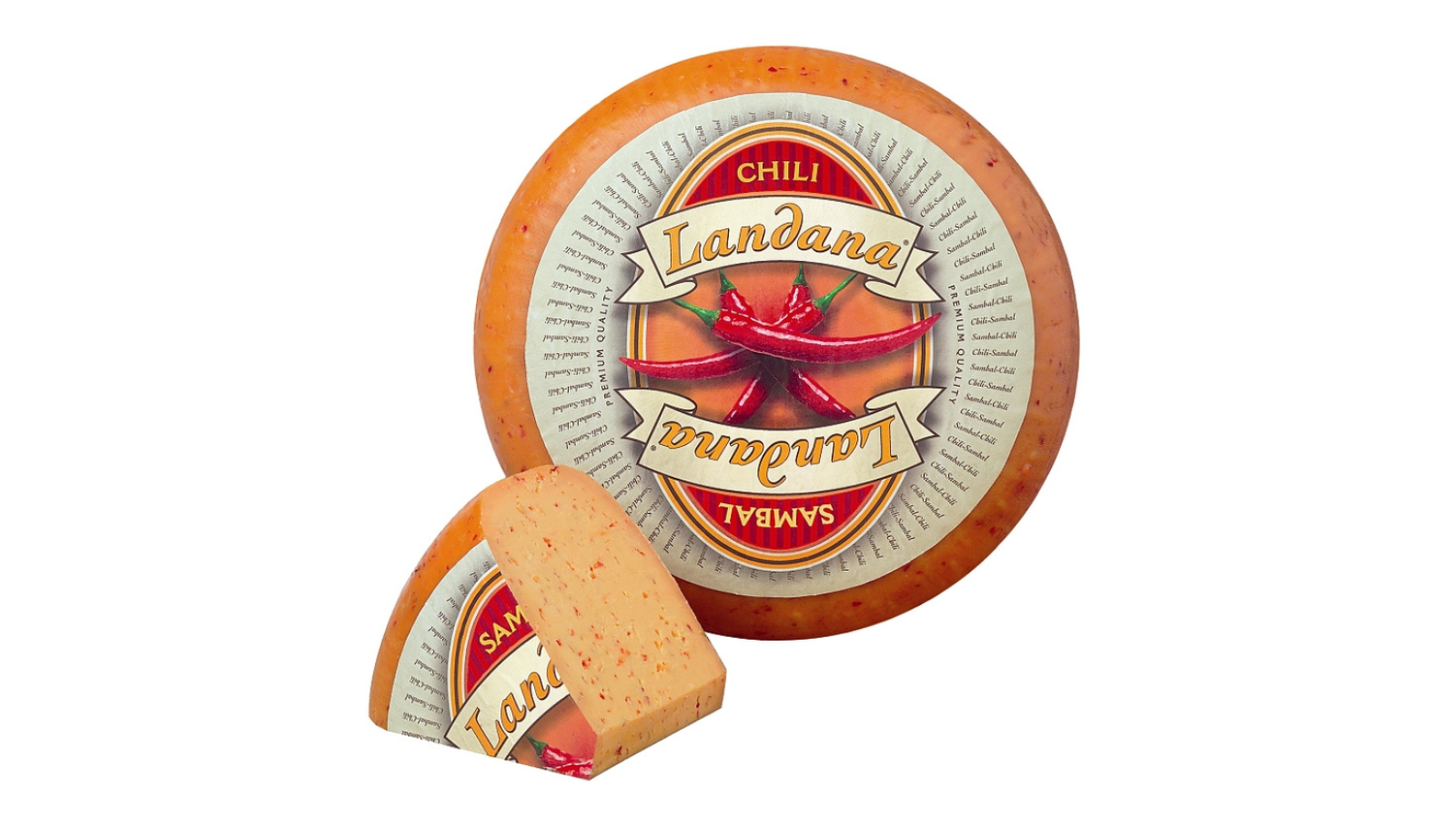 Sýr Landana Chili‑Sambal je výrazný holandský syr s pikantnou kombináciou čili papričiek a sambal pasty, ktorá mu dodáva intenzívnu, korenistú a príjemne hrejivú chuť. Má hladkú, pružnú konzistenciu a vyvážený pálivý profil, ktorý vynikne v sendvičoch, na pečive, v teplých jedlách alebo ako odvážny prvok na syrovom tanieri. Je obľúbený medzi milovníkmi ostrejších syrov pre svoju energickú chuť a aromatický charakter.