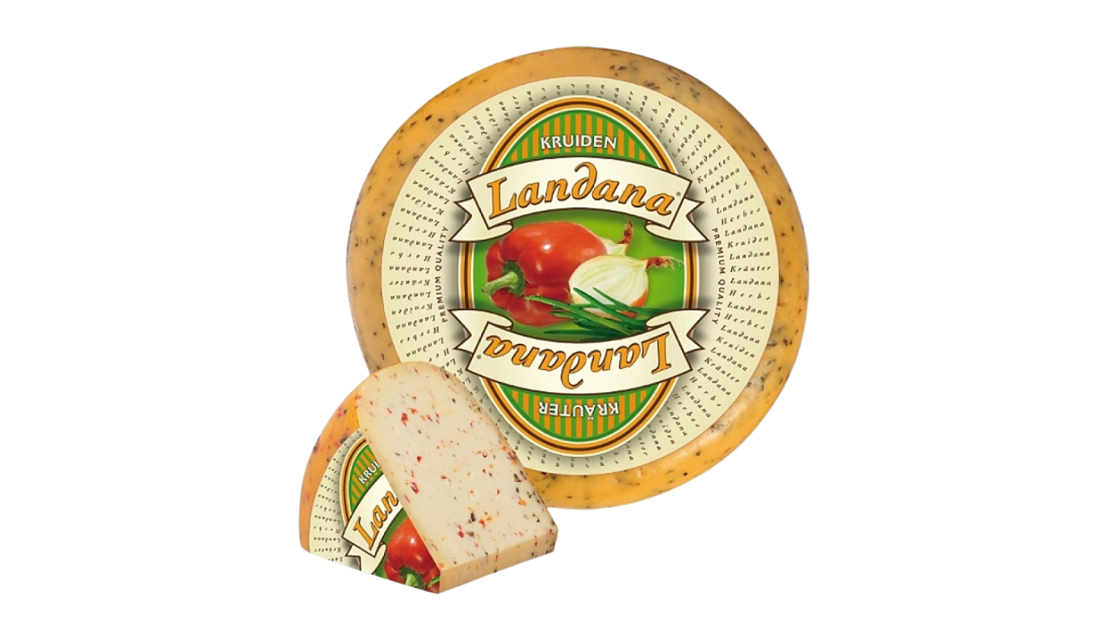 Sýr Landana Kruiden je jemný holandský syr dochutený zmesou aromatických byliniek, papriky a cibule, ktoré mu dodávajú sviežu, výraznú a príjemne korenistú chuť. Má hladkú, pružnú konzistenciu a vyvážený profil, vďaka ktorému sa výborne hodí na pečivo, do sendvičov, šalátov či ako súčasť syrového taniera. Je obľúbený pre svoju univerzálnosť a lahodnú bylinkovú arómu.