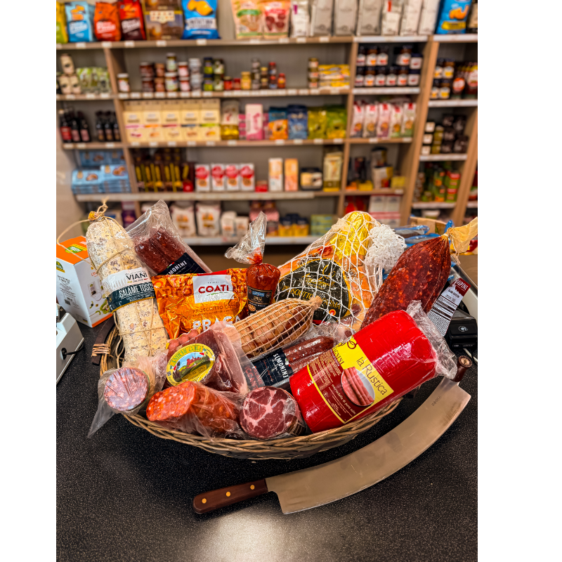 Saláma Toscana je tradičná talianska sušená saláma s výraznou, jemne korenistou chuťou, vyrábaná z kvalitného bravčového mäsa, slaniny, soli, čierneho korenia a prírodných korenín, plnená do prírodných čriev a pomaly zrejúca pre typickú arómu a pevnú konzistenciu.
