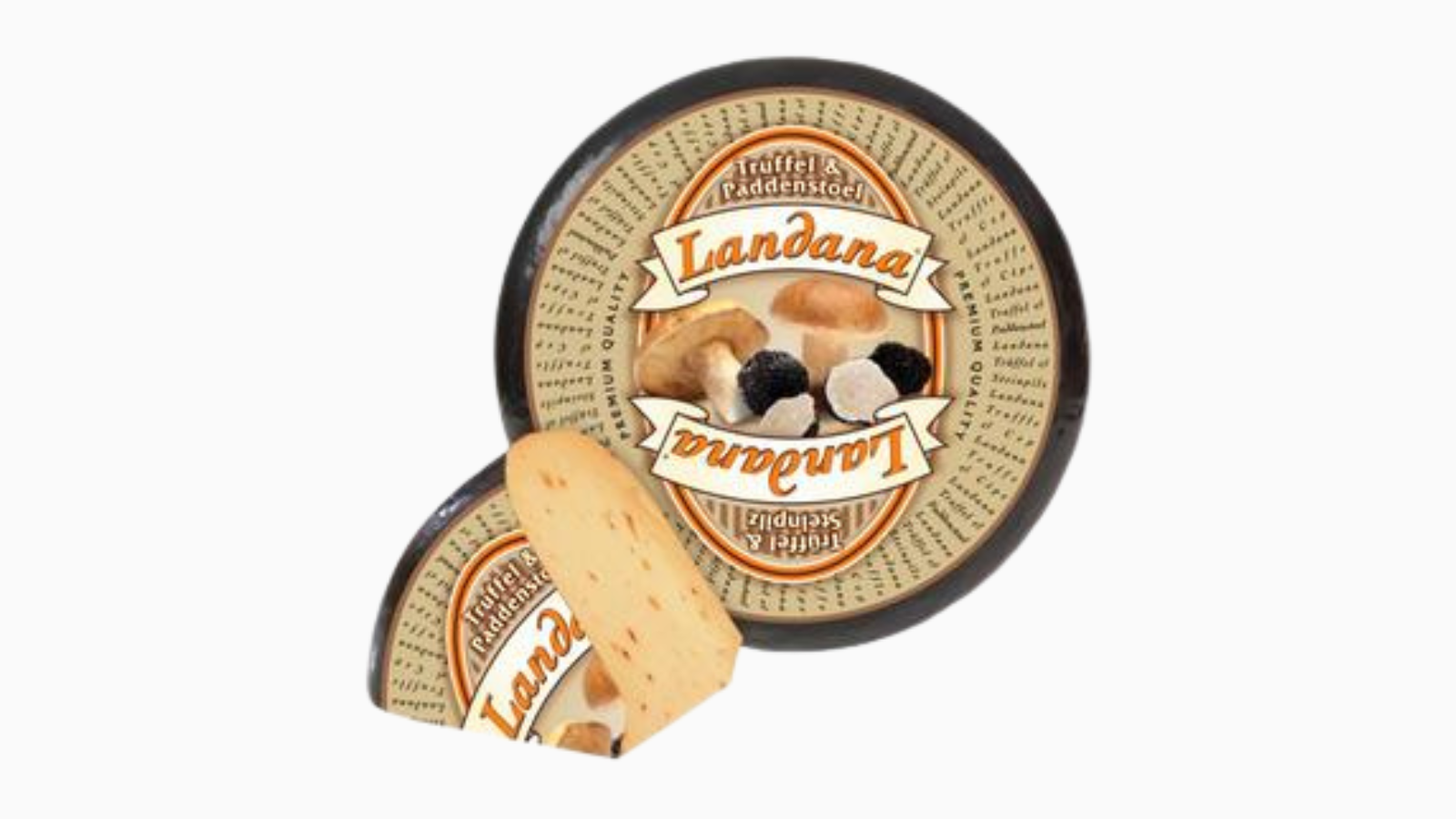 Sýr Landana Truffel & Paddenstoel je jemný holandský syr obohatený o kúsky čiernej hľuzovky a aromatických húb, ktoré mu dodávajú výraznú, zemito‑voňavú chuť. Má hladkú, krémovú konzistenciu a harmonickú kombináciu jemnosti syra s intenzívnou arómou hľuzoviek. Je obľúbený do syrových tanierov, na pečivo, do omáčok či ako gurmánsky doplnok k vínu.